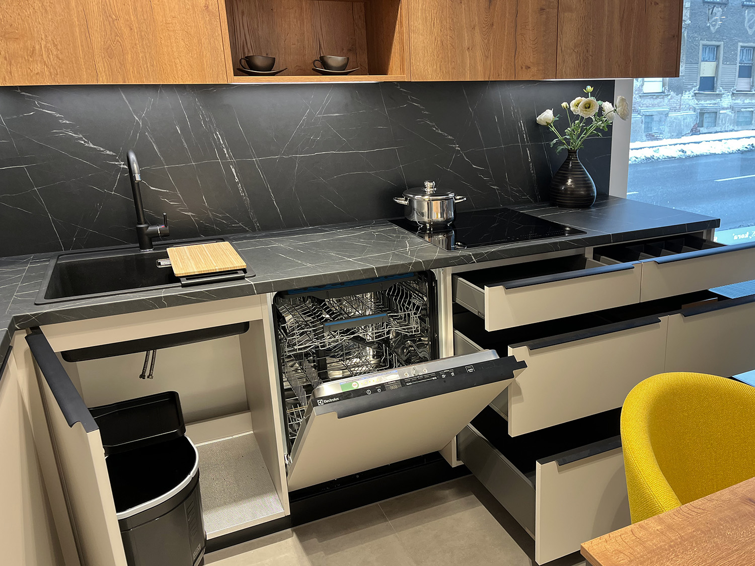 V ceně není započítána doprava, demontáž, montáž, spotřebiče a židle. Tyto lze za zvýhodněnou cenu dokoupit.