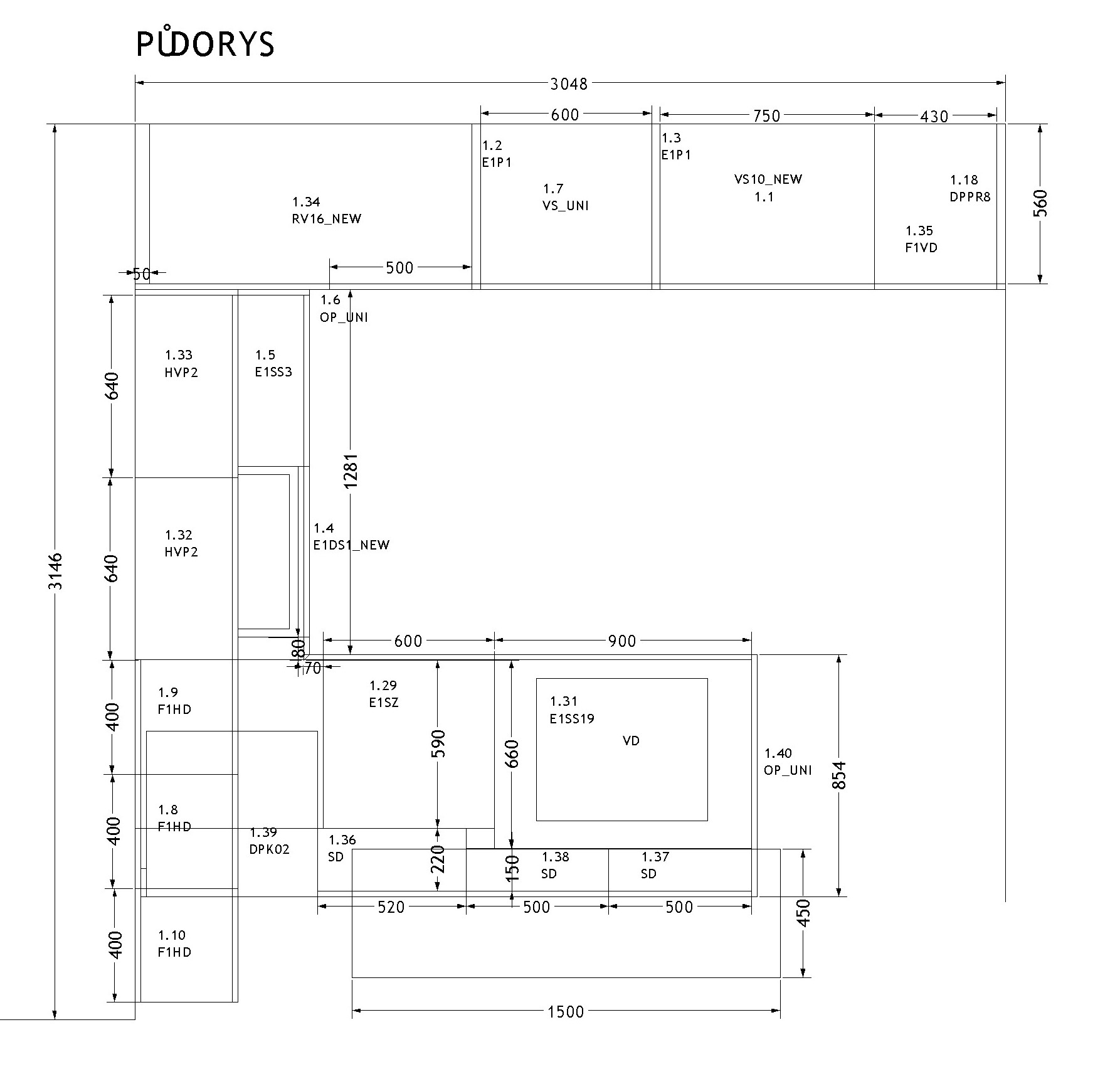 Nábytek je vystaven na kuchyňském studiu Sykora, Praha 9.
